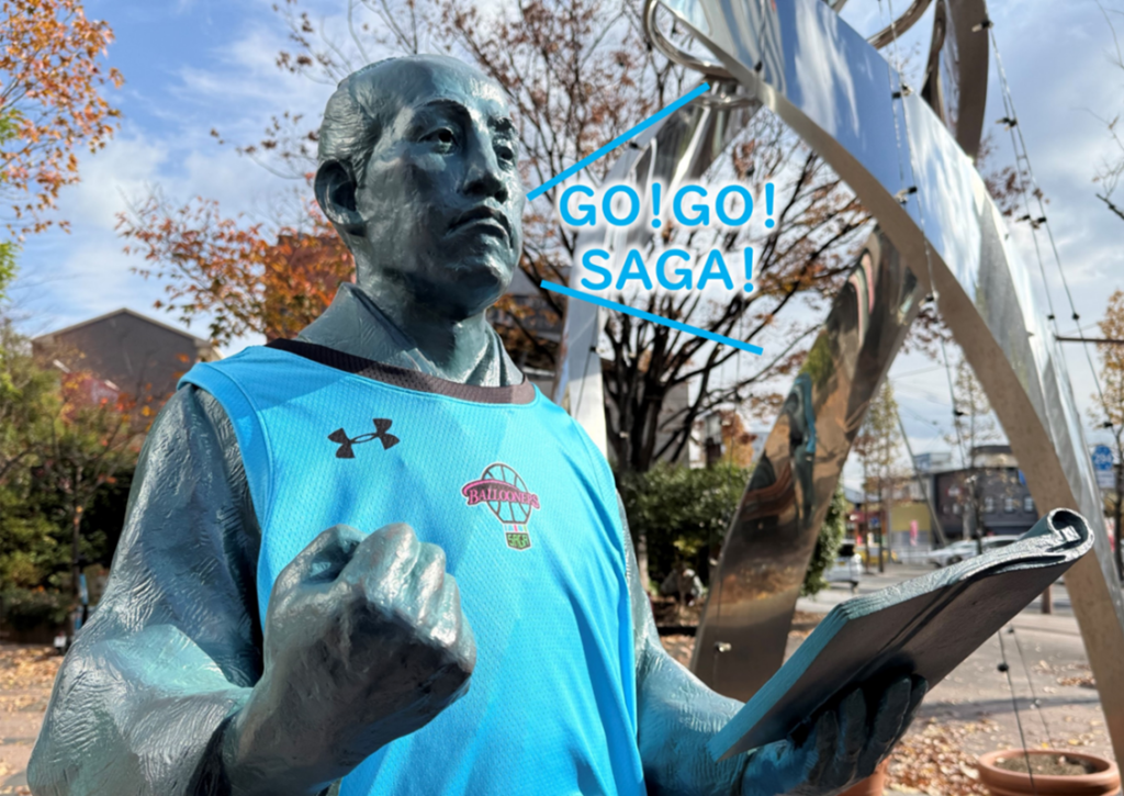 このたび、偉人モニュメントが佐賀バルーナーズのホーム戦の日程に合わせてユニフォーム等を着用し、強力な佐賀バルーナーズブースターとして勝利を後押しすることが決定しました。佐賀の偉人と一緒に佐賀バルーナーズを応援しましょう。「GO!GO!SAGA!」